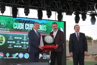 Uluslararası Cudi Cup Tenis Turnuvası için Şırnak’a gelen Gençlik ve Spor Bakanı Dr. Mehmet Muharrem Kasapoğlu, turnuvanın açılış törenine katıldı. Törende konuşan Dr. Kasapoğlu; "Bugün Cudi'de bayram var, Cudi'de baharın güzellikleri var. Gençlik Haftası'nın coşkusu, heyecanı var. Cudi'de bugün sevgi var, kardeşlik var. Bugün Cudi Dağı'nda sporun gücü, gençlerin motivasyonu, heyecanı, halkımızın mutluluğuyla çiçekler açıyor" dedi.Bakan Dr. Kasapoğlu ve beraberindeki heyeti Şırnak Şerafettin Havalimanında Şırnak Valisi Ali Hamza Pehlivan, Şırnak Milletvekili Rizgin Birlik, Trabzon Milletvekili Ayşe Sula Köseoğlu, Belediye Başkanı Mehmet Yarka, Rektörümüz Prof. Dr. Mehmet Emin Erkan, İl Emniyet Müdürü Cemal Dalman, İl Jandarma Komutanı Albay Murat Bozkurt, Gençlik ve Spor İl Müdürü Abdullah Ayar, Türkiye Tenis Federasyonu Başkanı Cengiz Durmuş ve diğer ilgililer karşıladı.9 farklı ülkeden 81 sporcunun katılımıyla üniversitemiz kampusunda gerçekleştirilen Cudi Cup Uluslararası Tenis Turnuvası alanına geçen Bakan Dr. Kasapoğlu, tenis kompleksinde kortları inceledi; tenis sporuna gönül veren sporcu ve sporseverlerle bir araya gelerek başarılar diledi. Ardından Şehr-i Nuh Sanat Topluluğu'nun halk oyunları gösterisini izledi.Saygı duruşu ve İstiklal Marşı'nın okunmasıyla başlayan törende Tennis Europe Başkanı Ivo Kaderka'nın mesajı paylaşıldı. Şırnak Milletvekili Rızgin Birlik, Şırnak Belediye Başkanı Yarka ve Türkiye Tenis Federasyonu Başkanı Cengiz Durmuş da birer konuşma yaptı. Ardından kürsüye gelen Şırnak Valisi Ali Hamza Pehlivan, Şırnak’ın genç Türkiye’mizin nüfusu en genç olan iki ilinden biri olduğunu belirterek konuşmasına şöyle devam etti; “Yaş ortalamamız 21 ve her geçen gün sporcu sayımız artıyor. 3-4 yıl öncesinde 20 binli rakamlardayken şu anda yaklaşık 50 bin lisanslı sporcumuz var. Bunlar tesislerle, desteklenmeyle oluyor. Gençlik ve Spor Bakanlığımızın her ilçemizde muhakkak birden fazla yatırımı var. Biz de elimizden geldiğince gençlerimizi bu tesislere yönlendirmeye ve sporun ruhunu yakalayıp fiilen de yapmalarını sağlamaya çalışıyoruz.”Törende konuşan Gençlik ve Spor Bakanı Dr. Mehmet Muharrem Kasapoğlu ise; “Bugün Cudi'de bayram var, Cudi'de baharın güzellikleri var. Gençlik Haftası'nın coşkusu, heyecanı var. Cudi'de bugün sevgi var, kardeşlik var. Bugün Cudi Dağı'nda sporun gücü, gençlerin motivasyonu, heyecanı, halkımızın mutluluğuyla çiçekler açıyor" dedi.Konuşmaların ardından Şırnak Valisi Pehlivan, Belediye Başkanı Yarka ve Türkiye Tenis Federasyonu Başkanı Durmuş, Bakan Kasapoğlu'na plaket takdim etti.