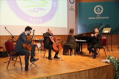 Dekan Yardımcısı Doç. Dr. Günay Tuzkaya’nın piyano, Öğr. Gör. Yiğit Can Kesendere’nin keman, Öğr. Gör. Gökhan Em’in gitar ve Çağrı Can Kuşçu’nun çello ile eşlik ettiği farklı müzik türleri ile yerel ve evrensel örneklere yer verilen konserde geleceğin müzisyen adayları güzel performanslarıyla davetlilere müzik şöleni sundu.