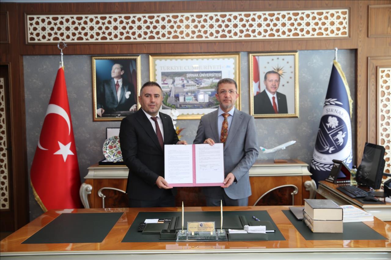 Şırnak Üniversitesi Rektörlük makamında gerçekleştirilen iş birliği protokolüne