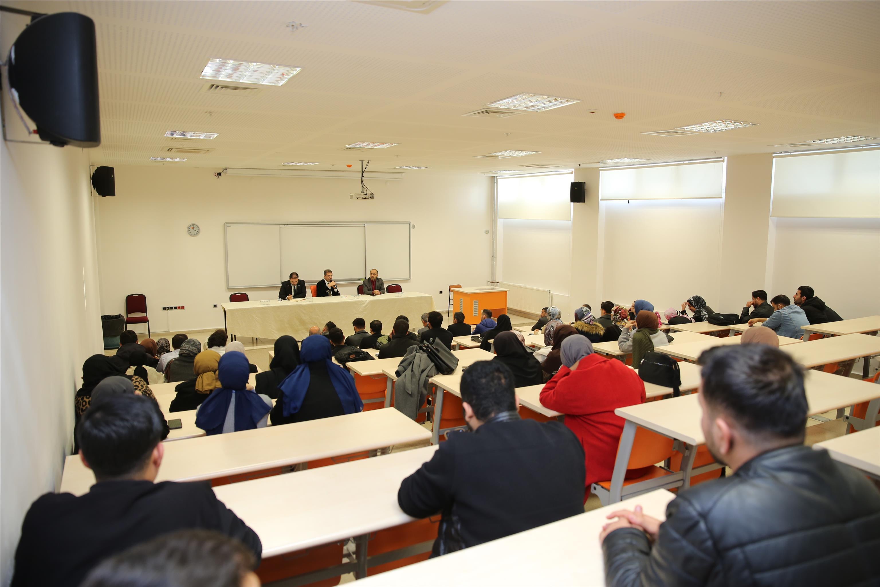 Üniversitemiz tarafından düzenlenen “Öğrenci Buluşmaları” programının beşincisi, İlahiyat Fakültesinde gerçekleştirildi. Programa Rektör Prof. Dr. Abdurrahim Alkış’ın yanı sıra Genel Sekreter Dr. Öğr. Üyesi Mustafa Cabir Altıntaş ve İlahiyat Fakültesi Dekanı Prof. Dr. Hüseyin Güneş katıldı. İlahiyat Fakültesi öğrencilerinin yoğun ilgi gösterdiği buluşma, sıcak ve samimi bir ortamda gerçekleşti.