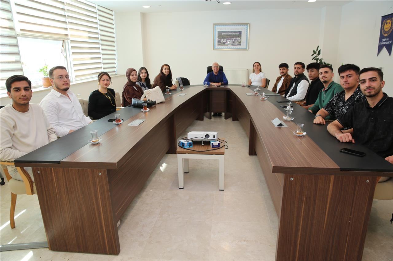 Üniversitemiz bünyesinde bu yıl yeni açılan Petrol ve Doğalgaz Mühendisliği Bölümüne yerleşen öğrenciler Rektörümüz Prof. Dr. Abdurrahim Alkış’ı makamında ziyaret ederek kendileriyle tanıştılar.