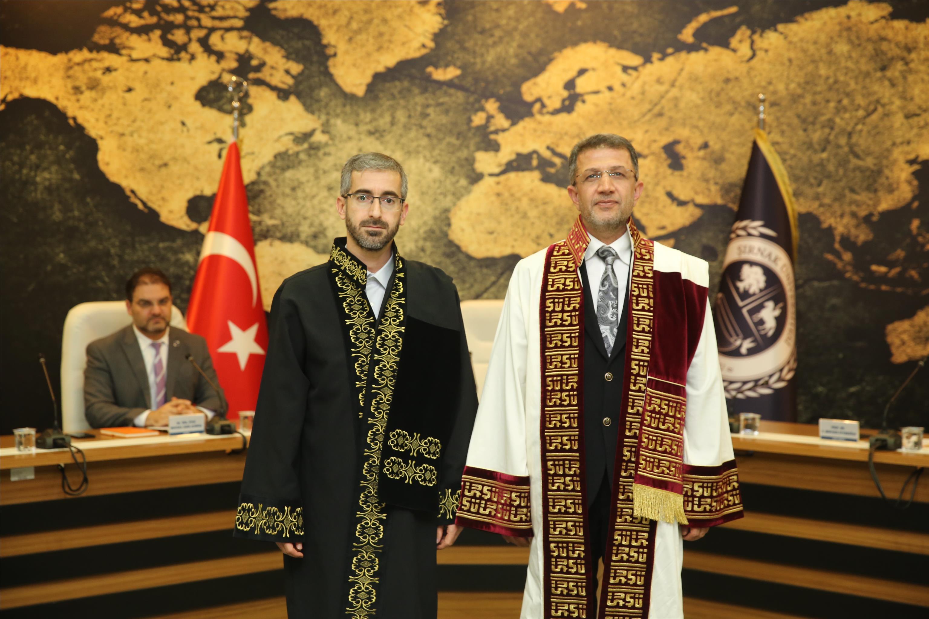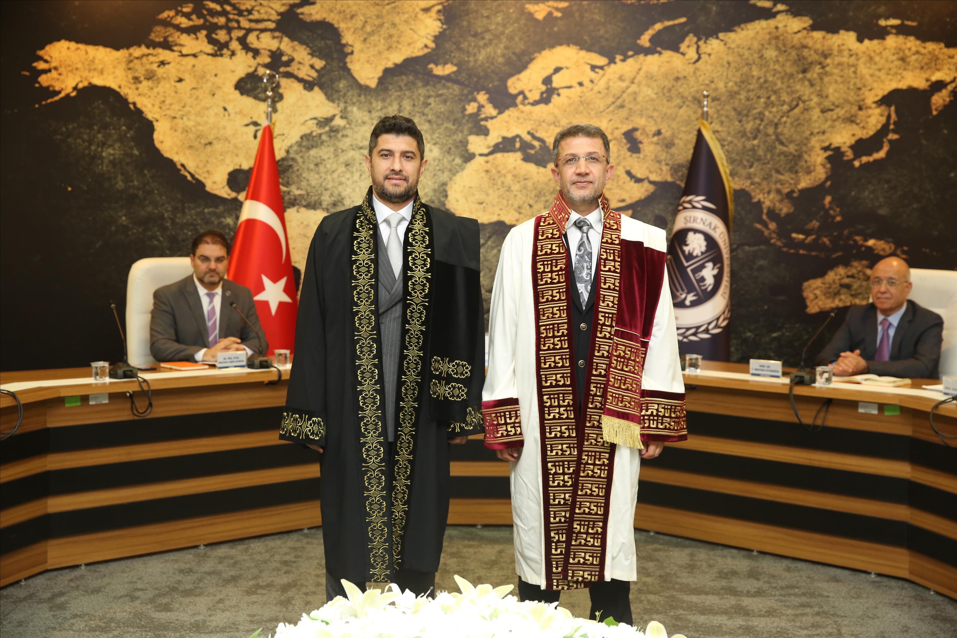 Üyesi Fatih Karataş’ın doçentlik cübbeleri Rektör Prof. Dr. Abdurrahim Alkış