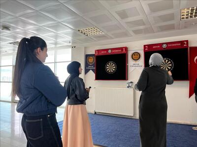 8 Mart Dünya Kadınlar Günü dolayısıyla düzenlenen dart turnuvasına kadın