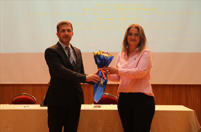 Dr. Abdurrahim Alkış konuşmacılara teşekkür belgesi ile çiçek takdiminde bulundu.