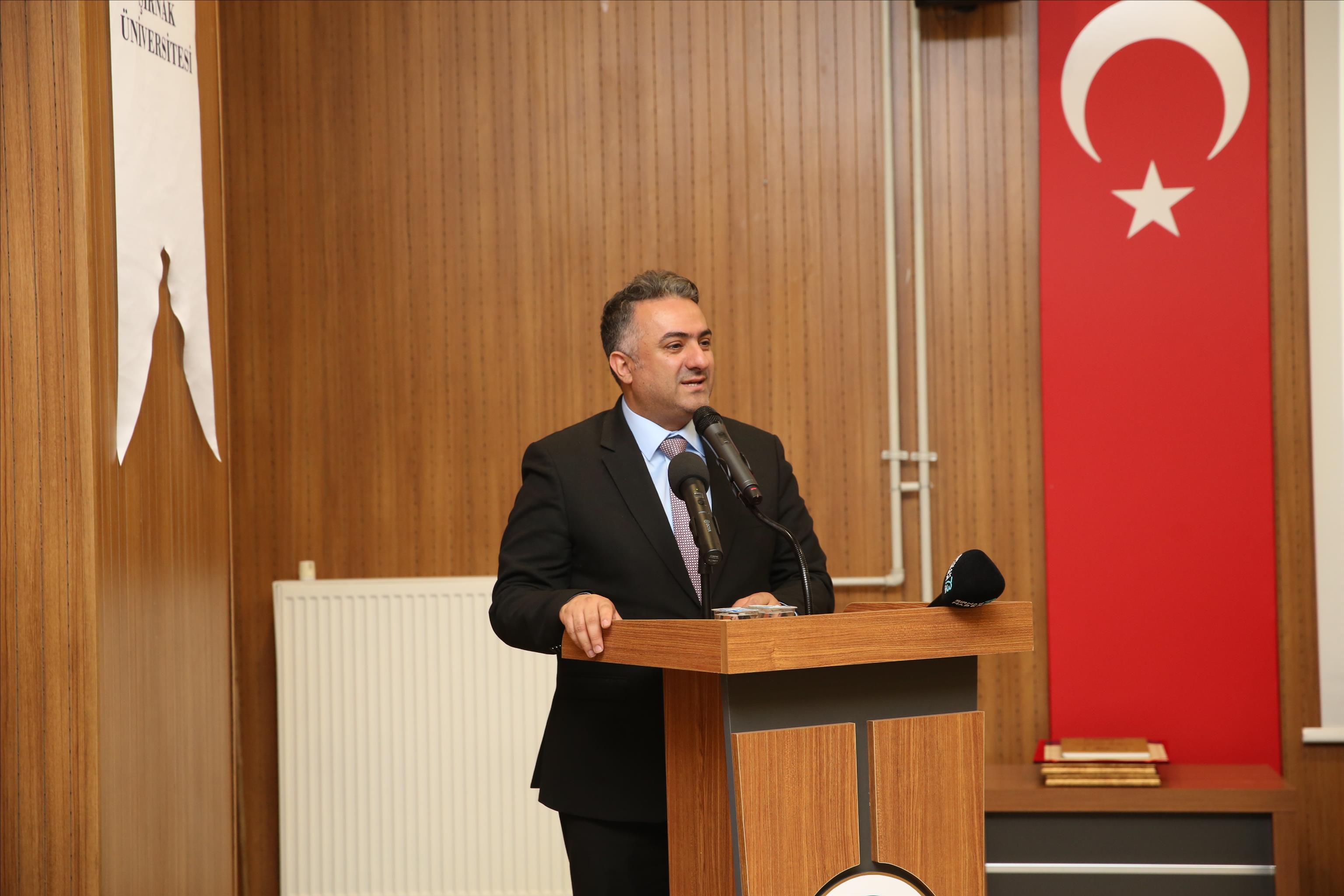 konferansa; Şırnak Valisi Birol Ekici, Şırnak Belediye Başkanı Mehmet Yarka, Üniversitemiz
