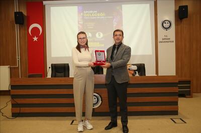 Seminer; Rektör Alkış’ın SportsTech Türkiye Temsilcisi Esin Çelik’e plaket takdiminin ardından toplu fotoğraf çekimi ile sona erdi.